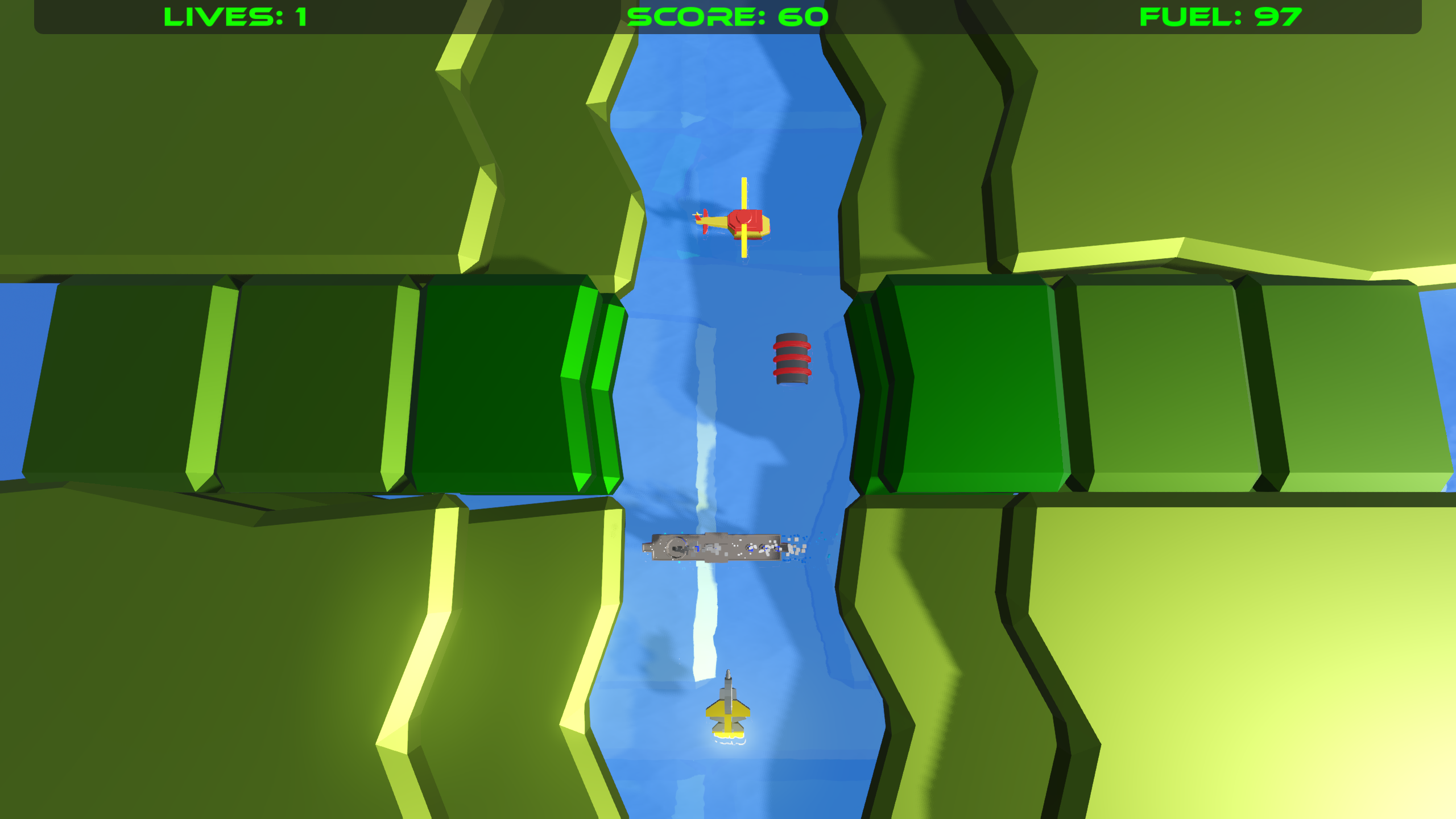 Here’s my next project on my game development journey — a 3D remake of Atari’s 1982 classic River Raid. As with Neon Invaders, I created all the particle effects in Godot and all other assets in Blender. The sound effects come from Freesound.